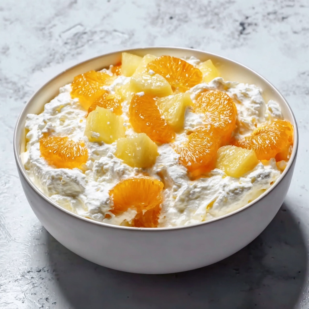 If you are searching for a delightful and nostalgic treat that bursts with flavor and texture, this Ambrosia Salad Recipe is an absolute must-try. It’s a vibrant combination of juicy mandarin oranges, sweet pineapple tidbits, fluffy marshmallows, and creamy sour cream, all enhanced with the tropical hint of shredded coconut. This salad is a perfect balance of fruity freshness and indulgent creaminess that both kids and adults love. Whether you’re preparing it for a holiday gathering or a casual family dinner, this Ambrosia Salad Recipe will quickly become one of your cherished favorites.