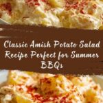 This classic Amish Potato Salad features tender Yukon Gold or red potatoes combined with hard-boiled eggs, crunchy celery, sweet onion, and a creamy, tangy dressing made from mayonnaise, yellow mustard, apple cider vinegar, and sweet pickle relish. It’s a perfect side dish for BBQs, picnics, and potlucks, offering a rich, flavorful, and nostalgic taste that develops beautifully after chilling.