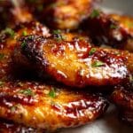 Once the wings are out of the oven, transfer them to a serving bowl and immediately pour the warm, sticky glaze over them. Toss gently but thoroughly to coat every wing in that mouthwatering sauce. Serve them hot and get ready for the happiest taste buds ever!