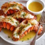 Once poached, carefully remove the lobster tails from the butter and place them on your serving plates. Garnish with a sprinkle of fresh parsley if you want a lovely color contrast and a hint of freshness. Don’t forget to offer some of the warm poaching butter on the side for dipping — this is pure indulgence!