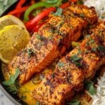 This Caribbean Coconut Curry Salmon recipe combines tender, seared salmon fillets with a rich and aromatic coconut curry sauce infused with Caribbean spices, bell peppers, and fresh herbs. Perfect for a flavorful tropical-inspired dinner that comes together in under an hour, delivering a balanced dish of protein and vibrant, mildly spicy flavors.