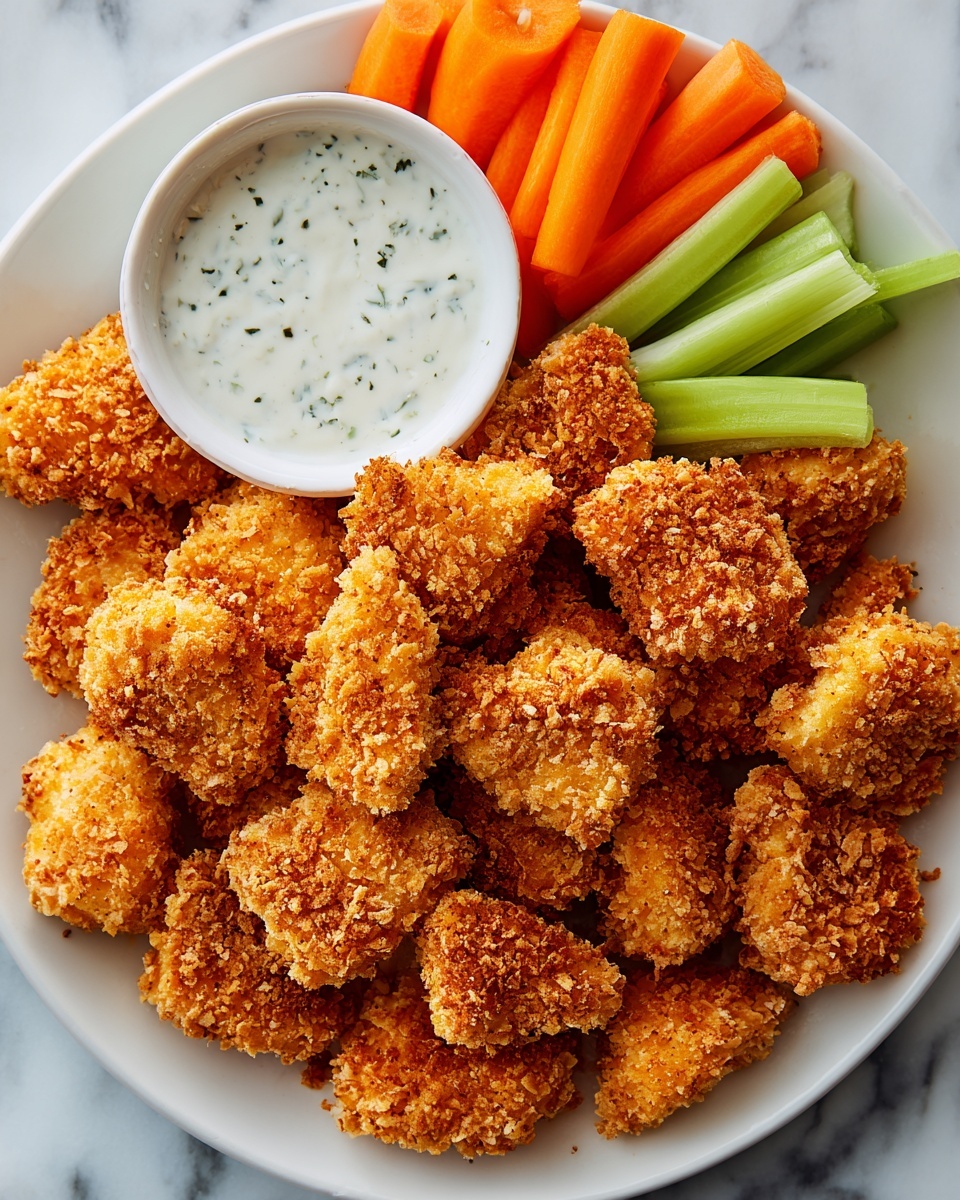 These chicken bites pair wonderfully with fresh veggies, like crunchy carrot sticks or celery, and a creamy ranch dressing or honey mustard for dipping. For a heartier meal, serve them alongside a crisp salad or even garlic mashed potatoes for comfort food vibes.