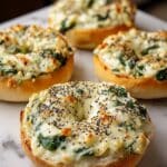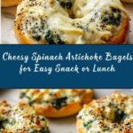 Cheesy Spinach-Artichoke Bagels are a delicious and savory snack or appetizer featuring a creamy mixture of spinach, artichokes, and cheeses spread over toasted bagel halves. This easy-to-make recipe combines fresh ingredients with melted mozzarella and Parmesan to create a warm, satisfying treat perfect for any occasion.