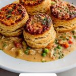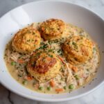 This hearty Chicken Pot Pie with Biscuits combines tender chicken and vegetables in a creamy sauce topped with flaky baked biscuits, creating a comforting and delicious meal perfect for family dinners or special occasions.