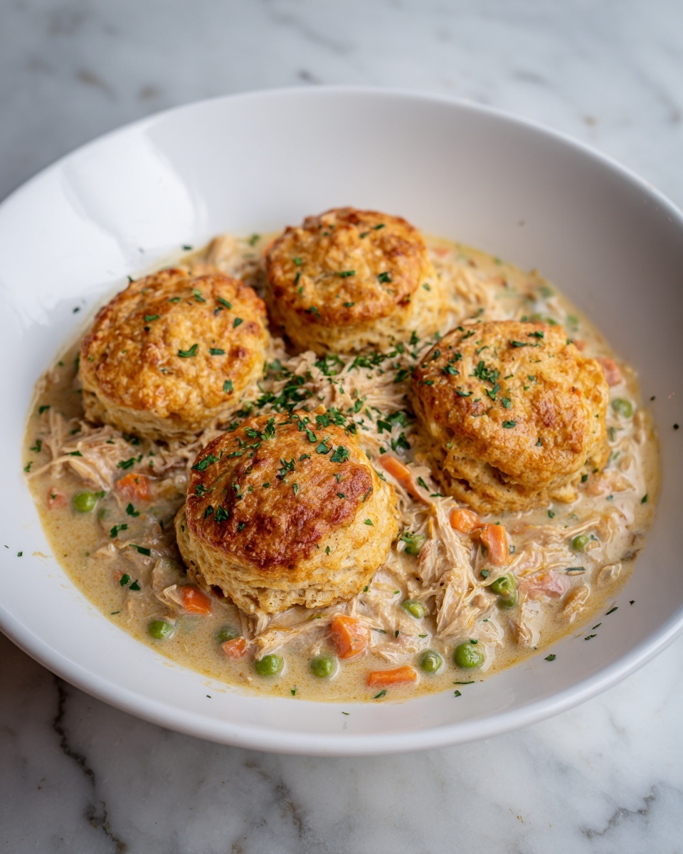 For a fun spin, consider making individual servings using ramekins and topping each with a biscuit round. This makes portion control easier and creates a charming presentation for dinner parties or family meals. You can also sprinkle a little shredded cheddar over the biscuit dough before baking for a cheesy crust that’s irresistible.