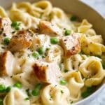 This creamy Chicken Tortellini Alfredo combines tender bite-sized chicken pieces with cheese-filled tortellini pasta, all enveloped in a rich Parmesan cream sauce. Ready in just 30 minutes, it’s a comforting and satisfying Italian-inspired meal perfect for weeknight dinners.