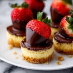 Delight in these elegant Chocolate-Dipped Strawberry Mini Cheesecakes, combining a buttery graham cracker crust with creamy cheesecake filling, topped with luscious melted milk chocolate and fresh strawberries. Perfect for parties or a special dessert treat.
