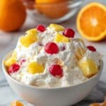 This classic Ambrosia Salad is a creamy and refreshing fruit salad featuring pineapple chunks, mandarin oranges, mini marshmallows, shredded coconut, and maraschino cherries, all combined in a luscious whipped topping and sour cream base. Perfect as a sweet side dish or dessert, it’s easy to prepare and best served chilled after a few hours of refrigeration to allow the flavors to meld.