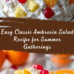For a fun twist, serve the Classic Ambrosia Salad Recipe in hollowed-out pineapple halves or individual clear cups layered with granola or toasted nuts for a textural surprise. This presentation amps up the visual appeal and makes your dish the star of any buffet table.