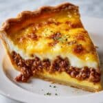 This Classic American Cheeseburger Pie is a hearty, comforting dish that combines seasoned ground beef and onions with layers of sharp Cheddar cheese, all enveloped in a creamy custard and baked to golden perfection. Topped with melted American cheese, this savory pie offers a delicious twist on the traditional cheeseburger, perfect for an easy weeknight dinner or a satisfying family meal.