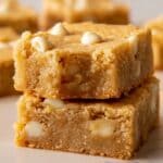 Once completely cooled, store your blondies in an airtight container at room temperature for up to 3 days to keep them soft and moist. If you want to keep them a bit longer, the fridge will extend their life up to a week but may firm them slightly.