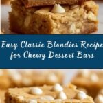 Classic blondies are rich, chewy dessert bars featuring a buttery, brown sugar base complemented by the warm flavors of vanilla and optional chocolate chips or nuts. Perfectly baked to a golden brown, these blondies are a delightful American treat that’s easy to prepare and sure to satisfy any sweet tooth.