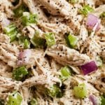 This Classic Chicken Salad Recipe stores wonderfully in an airtight container in the refrigerator. It’s best enjoyed within 2–3 days to keep the chicken tender and the veggies crisp.