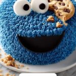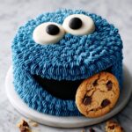 The Cookie Monster Cake is a playful, fun dessert inspired by the iconic Sesame Street character. Featuring moist vanilla-chocolate chip cake layers enveloped in rich cream cheese buttercream tinted in Cookie Monster’s signature blue, the cake is filled with a soft chocolate chip cookie dough and decorated with homemade cheesecake eyes and chocolate chip cookies for an irresistible, whimsical treat perfect for parties or any special occasion.