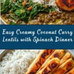 This Creamy Coconut Curry Lentils with Spinach recipe is a comforting, hearty dish that combines tender lentils simmered in a rich coconut milk and tomato curry sauce, infused with fragrant spices. Enhanced with fresh spinach and garnished with cilantro and a splash of citrus, it’s a flavorful, nutritious meal perfect for a cozy dinner or meal prep.