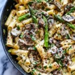 This Creamy Mushroom and Asparagus Chicken Penne is a quick and delicious one-pan meal featuring tender chicken breast, sautéed mushrooms and fresh asparagus, all tossed in a rich and creamy garlic Parmesan sauce. Ready in just 30 minutes, it’s perfect for a satisfying weeknight dinner.