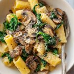 A quick and delicious creamy Parmesan spinach mushroom pasta that combines tender sautéed mushrooms and fresh spinach in a rich, velvety sauce made with heavy cream and Parmesan cheese. Perfect for a comforting weeknight dinner ready in just 20 minutes.