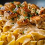 Fold the cooked pasta into the sauce, ensuring every piece gets a generous coating. Gently toss your golden chicken back into the skillet, bringing everything together for a final 2-3 minutes of warmth so the flavors meld beautifully and the dish is piping hot.