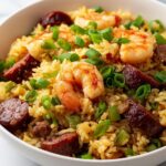 Finishing your Creole Jambalaya Recipe with fresh scallions adds a pop of vibrant green color and a subtle oniony crunch that cuts through the richness. For an extra touch, you can sprinkle chopped parsley or a squeeze of fresh lemon juice to brighten the flavors even more.