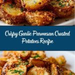 These Crispy Garlic Parmesan Crusted Potatoes are perfectly golden and crunchy on the outside, tender on the inside, and bursting with savory garlic and sharp Parmesan flavor. A simple and delicious side dish made with Yukon Gold or red potatoes, olive oil, garlic, and fresh herbs, baked to crispy perfection.
