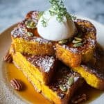 This Fall Pumpkin French Toast recipe combines the cozy flavors of pumpkin and warm spices with classic French toast for a perfect autumn breakfast. Each slice is soaked in a creamy pumpkin-spice custard, then pan-fried to a golden brown and topped with maple syrup and optional sweet garnishes, offering a delicious seasonal twist on a breakfast favorite.