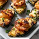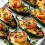 Fiery Cajun Shrimp Stuffed JalapeƱos are a spicy, flavorful appetizer featuring large jalapeƱo peppers filled with a creamy mixture of chopped cooked shrimp, cream cheese, cheddar, and crumbled bacon, seasoned perfectly with Cajun spices. Baked until bubbly and golden, these stuffed jalapeƱos offer a delicious combination of smoky, cheesy, and spicy flavors that are perfect for parties or game day snacks.
