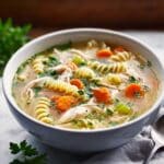 This Fresh Herb Chicken Noodle Soup is a comforting and flavorful homemade soup featuring tender chicken breasts simmered with fresh thyme, oregano, rosemary, garlic, and a medley of fresh herbs. Combined with hearty vegetables like carrots, celery, and onion, this soup is perfect for a cozy meal. Serve it with cooked pasta, rice, or crusty bread to make it even more satisfying.