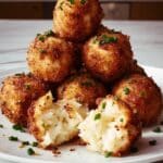 Deliciously crispy Fried Mashed Potato Balls made with creamy mashed potatoes, cheddar cheese, and optional bacon bits, coated in breadcrumbs and deep-fried to golden perfection. A perfect savory appetizer or party snack that makes great use of leftover mashed potatoes.