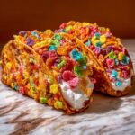 The Fruity Pebbles Cheesecake Tacos Recipe is one of those delightful surprises that combines childhood fun with sophisticated flavor in the best possible way. Whether you’re serving them at a party or indulging in a sweet treat at home, these tacos are guaranteed to bring color, joy, and creaminess to your dessert table. Give this recipe a try—you’ll be creating happy memories bite by bite!