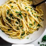 After you turn off the heat, stir in the remaining tablespoon of butter and the parsley. This final addition makes the noodles glossy, rich, and fragrant, while the parsley adds a fresh, vibrant touch that lifts the overall flavor profile.