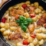Definitely cook the gnocchi separately according to package instructions before adding it to the skillet. This ensures they remain tender and don’t get mushy when combined with the sauce and chicken.