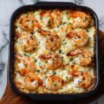 This Garlic Shrimp Gratin is a rich and creamy seafood dish featuring tender shrimp baked in a luscious garlic cream sauce and topped with a golden, crispy breadcrumb and cheese crust. Perfect as an elegant appetizer or main course, it combines the flavors of garlic, Parmesan, and mozzarella with hints of white wine for a satisfying and delicious meal ready in just 30 minutes.