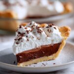 - Top the pie: Spread or pipe the whipped cream over the chocolate layer, either completely covering or leaving a border visible. Garnish with unsweetened cocoa powder or chocolate curls.