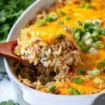 - Rest and Garnish: Remove from the oven and let the casserole rest for 5 to 10 minutes to set. Garnish with freshly chopped cilantro if desired before serving.