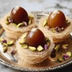 - Assemble the Dessert: Carefully place one soaked gulab jamun into each baked kunafa nest. Garnish with chopped pistachios or delicate rose petals for an elegant touch. Serve immediately to enjoy the contrast of warm, crispy nests with soft, syrupy gulab jamuns.