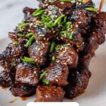 To elevate your kabobs visually and flavor-wise, sprinkle some toasted sesame seeds or finely chopped green onions on top. These garnishes add a pleasant crunch and a pop of color that makes the dish even more inviting.