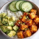 If avocado isn’t your favorite or you want a change, sliced cucumbers or a dollop of creamy hummus work wonderfully to bring a cooling, creamy element to the bowl.