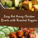 Finally, it’s time to build your bowls! Divide the cooked rice or quinoa among serving dishes, then layer roasted zucchini, summer squash, shredded carrots, and creamy avocado slices on top. Crown each bowl with the sticky hot honey chicken, making each bite a perfect blend of sweet, spicy, and fresh.