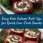 These Keto Salami Roll-Ups make a quick, flavorful, and low-carb snack or appetizer perfect for keto diets. Thinly sliced salami is filled with a creamy, tangy mixture of cream cheese, fresh chives, chopped dill pickles, and Dijon mustard, then rolled up with optional pepperoncini peppers for an added zesty punch. Ready in just 15 minutes, these roll-ups are easy to prepare and great for entertaining or a satisfying snack.