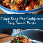 This Kung Pao Cauliflower is a flavorful and crispy vegetarian take on the classic Chinese dish. Cauliflower florets are coated in a savory batter, fried until golden, and then tossed in a spicy, tangy sauce with bell peppers, peanuts, and a hint of heat from red pepper flakes and dried chilies. Perfect served with steamed rice or noodles, this dish offers a delightful balance of textures and bold flavors in just 35 minutes.