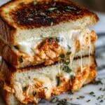 This Lazy Chicken Parmesan Grilled Cheese is a quick and delicious twist on classic chicken parmesan, combining tender cooked chicken, marinara sauce, and melted mozzarella and Parmesan cheeses sandwiched between buttery toasted bread. Ready in just 18 minutes, this sandwich makes a comforting and satisfying meal perfect for lunch or a cozy dinner.