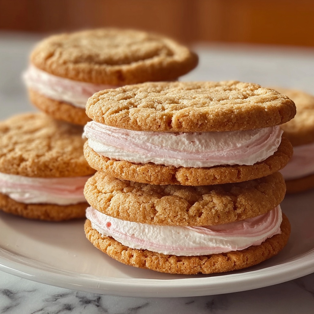 These sandwich cookies become even more irresistible when garnished with a sprinkle of powdered sugar or a light dusting of freeze-dried strawberry powder. You can also add a tiny twist of lemon zest on top for that zesty pop and visual appeal. Fresh strawberry slices or small mint leaves are charming, fresh touches if serving to guests.