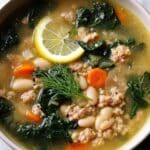 This hearty Lemon White Bean Soup with Turkey and Greens combines tender ground turkey, creamy cannellini beans, and fresh kale in a flavorful broth brightened by lemon juice and zest. Packed with warming herbs and spices like cumin, oregano, and rosemary, this comforting soup is perfect for a nutritious and satisfying meal prepared in just 45 minutes.