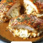 This Maple Mustard Glazed Chicken Breast Stuffed with Brie & Apple is a deliciously elegant dish perfect for fall dinners. Tender, juicy chicken breasts are stuffed with creamy brie and crisp apple slices, then glazed with a sweet and tangy maple mustard sauce. Searing the chicken creates a flavorful crust before baking it to juicy perfection. Garnished with fresh herbs, this dish pairs wonderfully with roasted vegetables or mashed sweet potatoes for a comforting yet sophisticated meal.