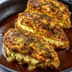 This Maple Mustard Glazed Chicken Breast Stuffed with Brie & Apple is a deliciously elegant dish perfect for fall dinners. Tender, juicy chicken breasts are stuffed with creamy brie and crisp apple slices, then glazed with a sweet and tangy maple mustard sauce. Searing the chicken creates a flavorful crust before baking it to juicy perfection. Garnished with fresh herbs, this dish pairs wonderfully with roasted vegetables or mashed sweet potatoes for a comforting yet sophisticated meal.