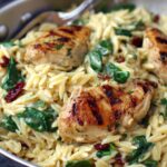 Marry Me Chicken Orzo is a creamy, flavorful one-pot recipe featuring tender chicken breasts seared to perfection and simmered with orzo pasta, sun-dried tomatoes, and fresh herbs. This comforting dish combines the richness of heavy cream, Parmesan cheese, and aromatic spices, finished with fresh spinach and basil, making it an ideal weeknight meal that’s both satisfying and easy to prepare.