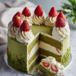 A sprinkle of extra matcha powder is a simple yet stunning way to finish this cake, adding a touch of vibrant green and a hint of bitterness that cuts through the sweetness. Fresh berries like raspberries or strawberries make a lovely contrast, both in color and flavor, enhancing the overall experience of every slice.