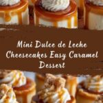These Mini Dulce de Leche Cheesecakes offer a perfect bite-size dessert combining a buttery graham cracker crust with a rich, creamy dulce de leche-infused filling. Baked in individual portions, they’re perfect for entertaining or a sweet treat anytime, topped with optional whipped cream and a drizzle of dulce de leche for an extra indulgent touch.