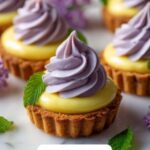 A delicate and refreshing Mini Lemon Tart topped with a floral lilac meringue, perfect for spring gatherings or elegant dessert occasions. This French-inspired treat features a buttery tart crust, tangy lemon filling, and a beautifully light, subtly floral meringue finish.