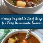 A hearty and comforting old-fashioned vegetable beef soup made with tender beef stew meat, a medley of fresh vegetables, aromatic herbs, and simmered slowly to develop rich flavors. Perfect for a wholesome family meal.
